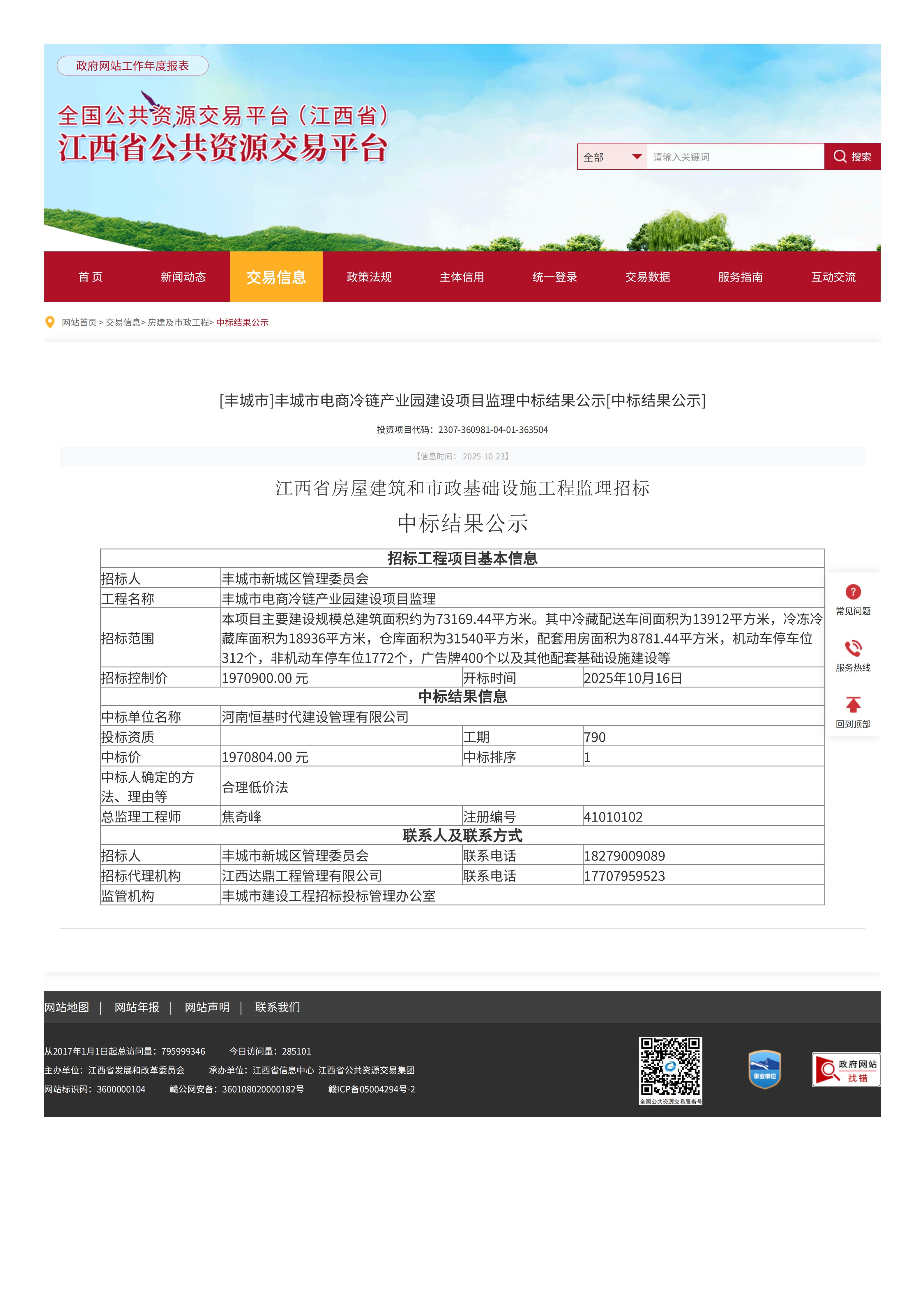 丰城市电商冷链产业园建设项目监理-中标结果公示