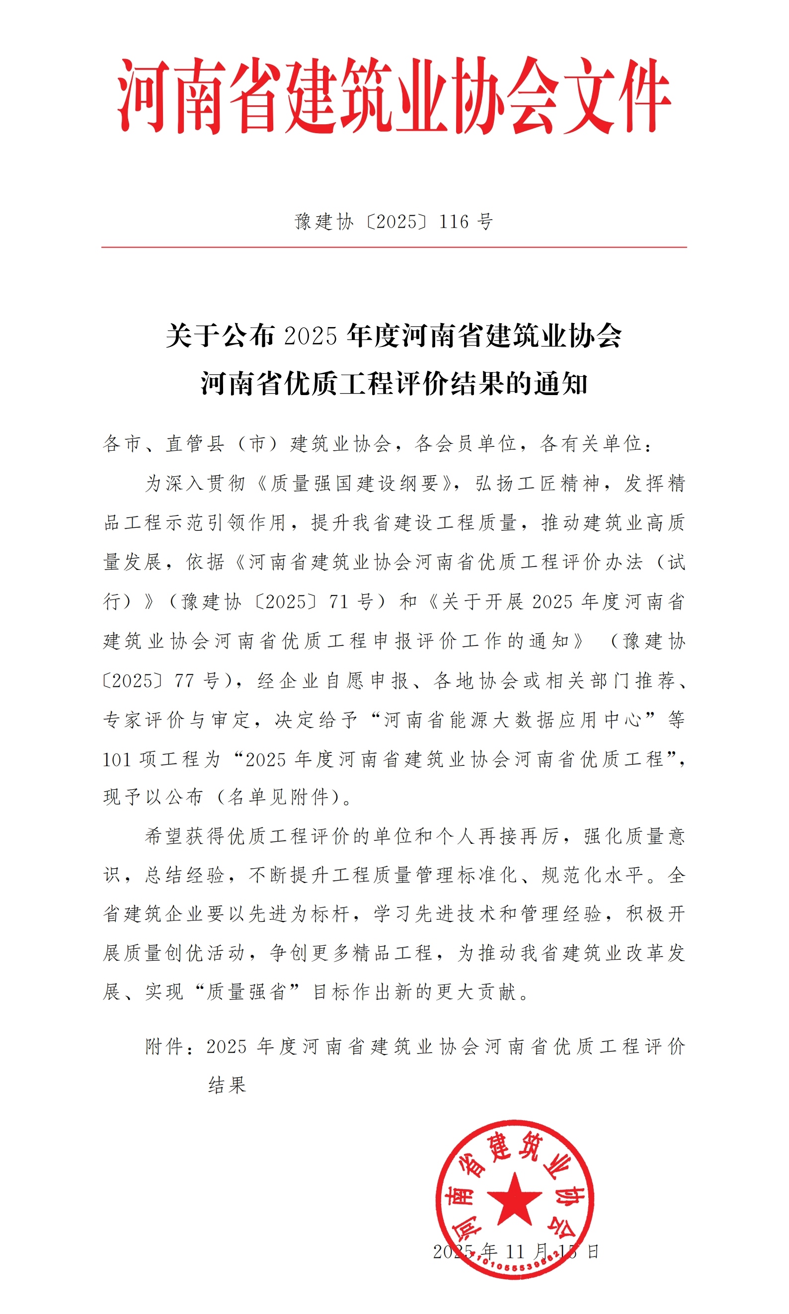 【喜讯】双喜临门!两项工程斩获 2025 年度河南省优质工程奖