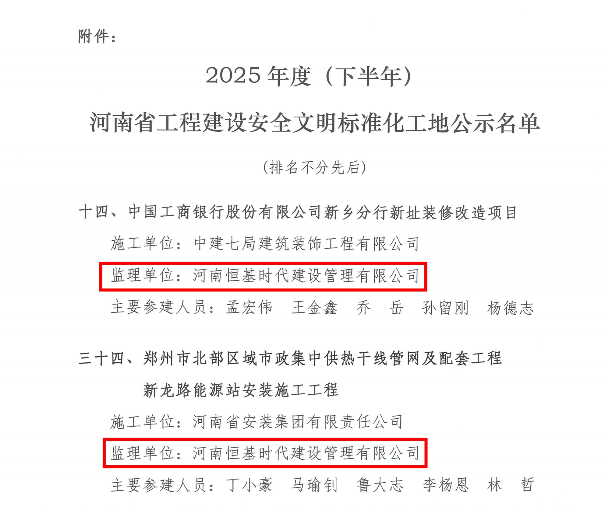 近日,郑州西汇房地产开发有限公司正式发布《郑轨・云庭项目百日劳动竞赛暨关键节点考核奖惩情况的通报》,河南恒基时代建设管理有限公司凭借专业严谨的监理服务、精益求精的责任担当,在众多参建单位中脱颖而出,获评 “优秀监理单位”,并,最终荣获7万元综合奖励,用实力赢得行业认可与甲方信赖!