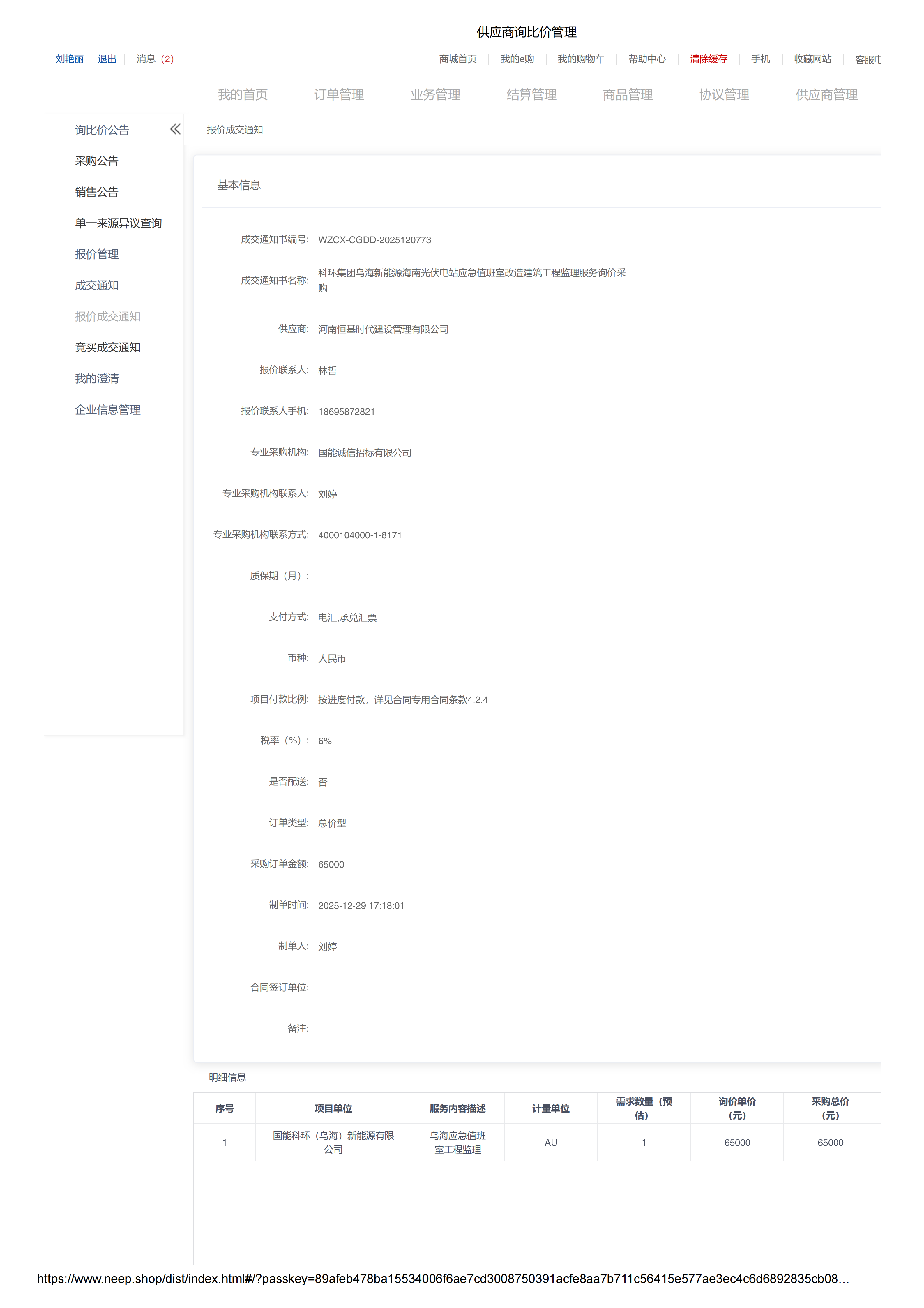 采购订单金额:65000.00元