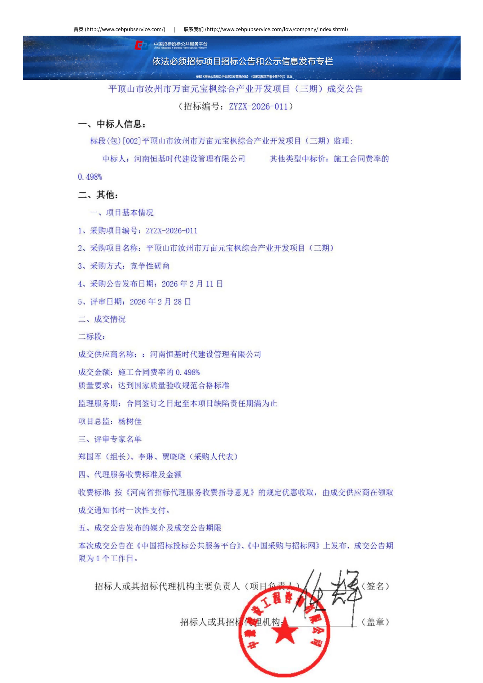 平顶山市汝州市万亩元宝枫综合产业开发项目(三期)-中标结果公告